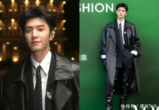 陈哲远皮衣配西装,脚下的大长皮靴很抢镜,有种“大佬范儿”。