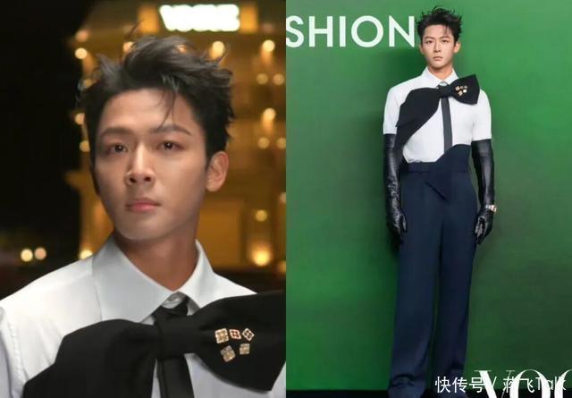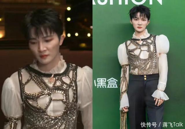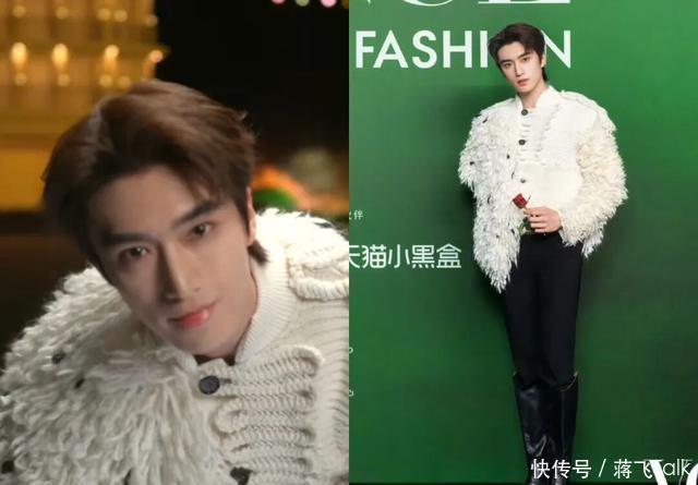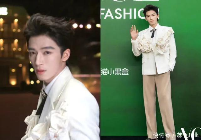 王星越上白下咖的西装搭配,装酷很在行,但西装上的花饰质感不太好啊!