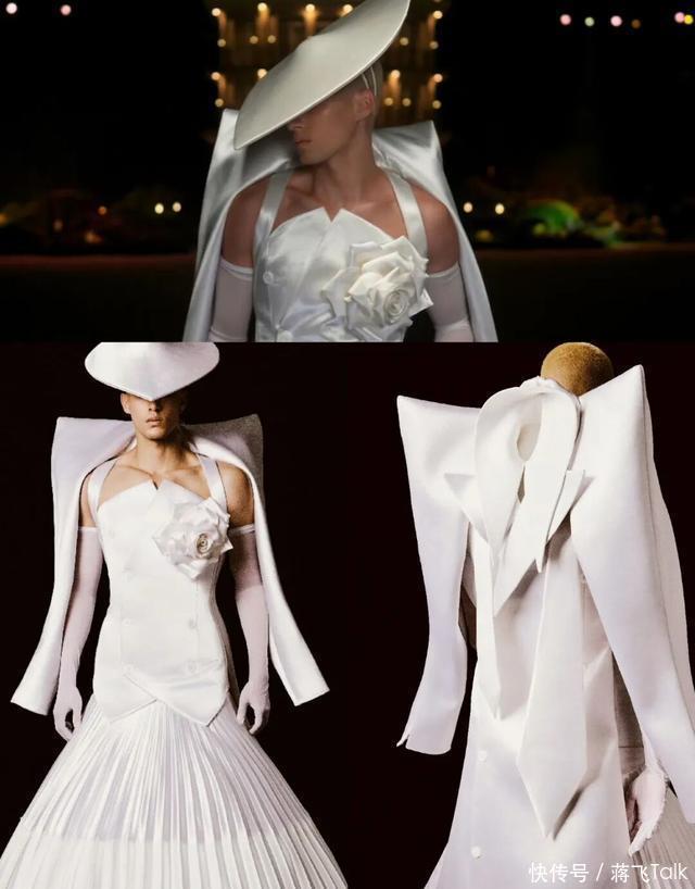 米卡的红毯妆造总是出乎意料,正面是新娘的婚纱,背面是新郎的西装,寓意是结婚前夕,偷穿新娘婚纱的新郎。