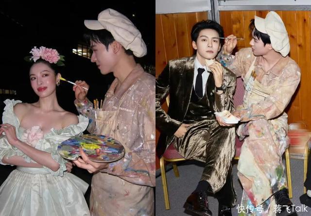 忙着给钟楚曦画腮红,给曾舜晞画眉毛,太敬业了!
