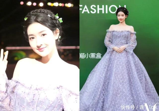 王玉雯紫色蓬蓬裙犹如公主。